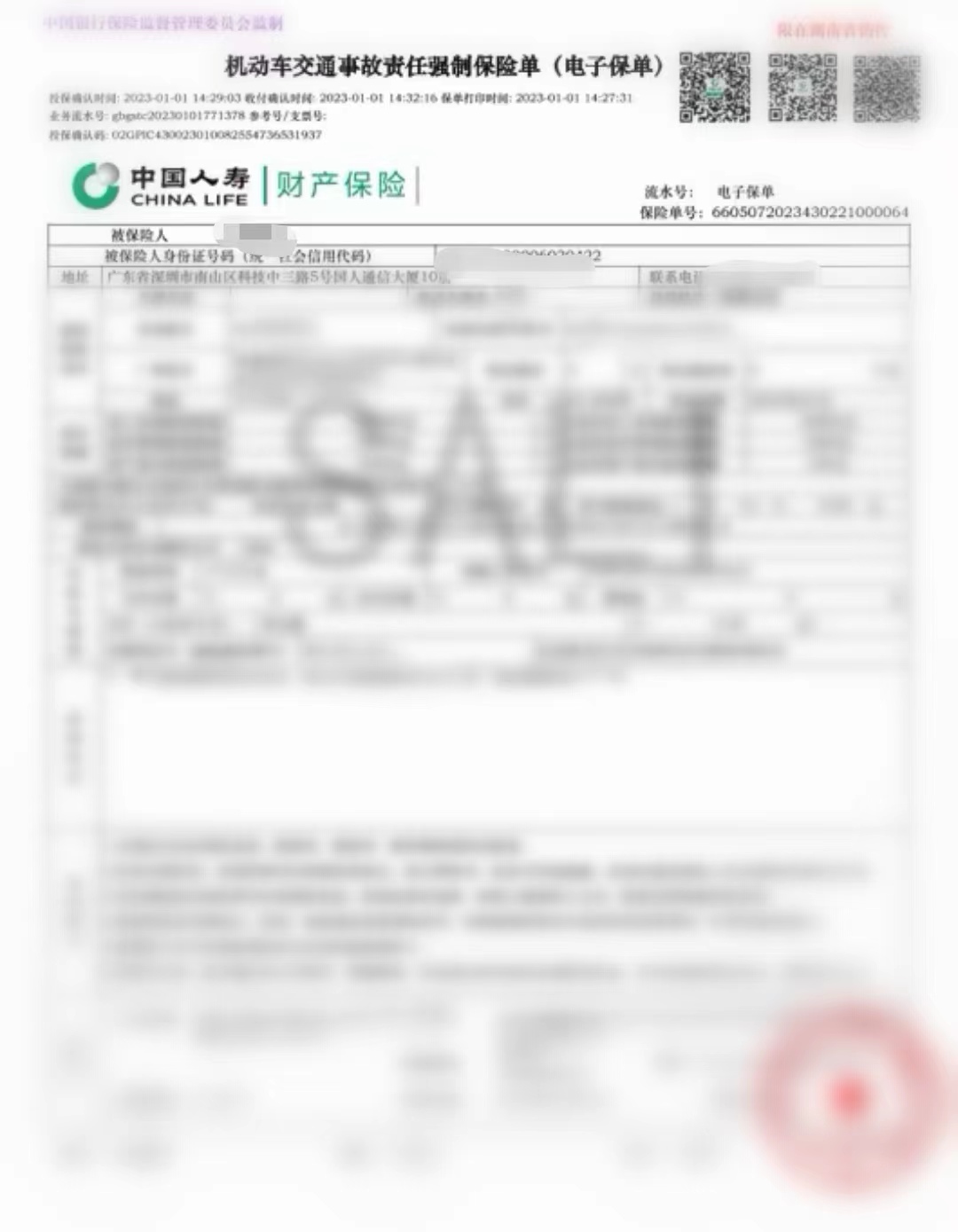 機(jī)動(dòng)車交通事故責(zé)任強(qiáng)制保險(xiǎn)單(電子保單)示圖