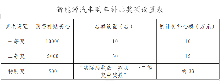 本次補(bǔ)貼以抽獎(jiǎng)方式進(jìn)行,一等獎(jiǎng)、二等獎(jiǎng)均按照名額設(shè)置開(kāi)獎(jiǎng)。特別獎(jiǎng)將按照實(shí)際抽獎(jiǎng)人數(shù)發(fā)放,凡未抽中一等獎(jiǎng)、二等獎(jiǎng)的消費(fèi)者均可獲得。